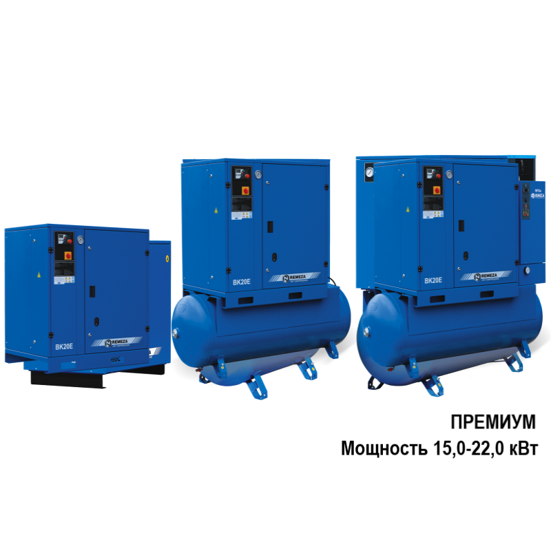 «Премиум» — Мощность 15,0-22,0 кВт серия компактных компрессоров с диапазоном производительности от 2200/1900/1400 до 3500/3200/2500 л/мин. Уровень шума — до 69 дБА. За управление агрегатом отвечает современная микропроцессорная система. Агрегаты можно дооснастить частотным преобразователем и холодильным осушителем. |
